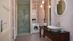 - 3 izby (obývacia miestnosť, spálňa s walk in šatníkom, detská izba), samostatná kuchyňa, krásna štýlová kúpeľňa s oknom.