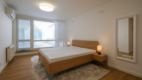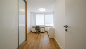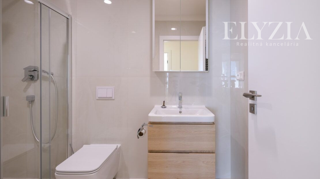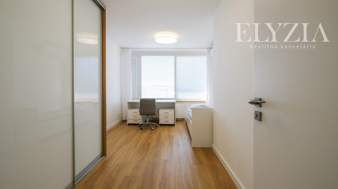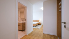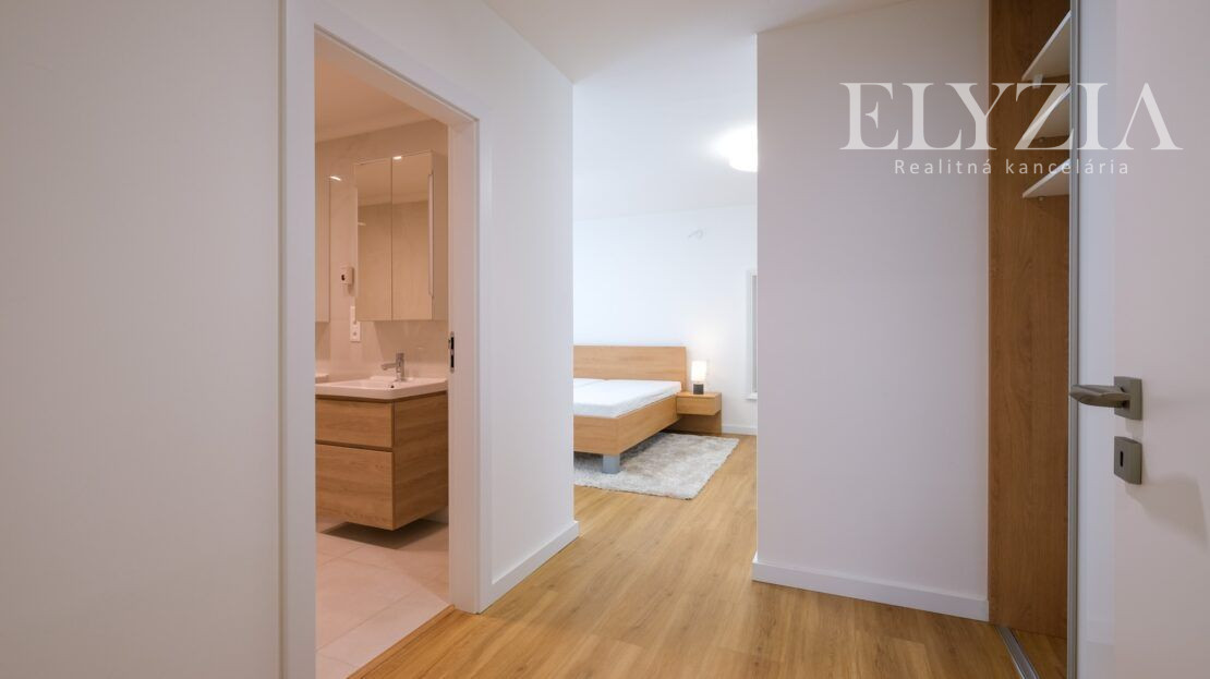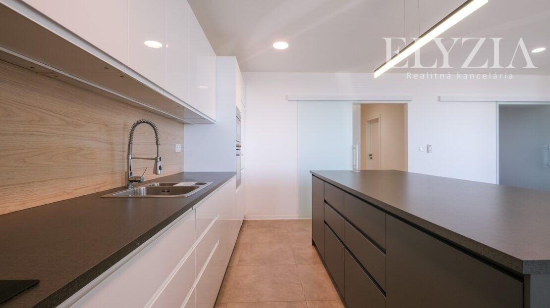 DISPOZÍCIA: predsieň, chodba, hosťovská izba, práčovňa, skladovací priestor, kuchyňa s komorou, obývacia izba s jedálňou a výstupom na terasu, hlavná spálňa so šatníkom a kúpeľňou s WC, 2 samostatné izby so spoločnou kúpeľňou a WC. Terasa prístupná pozdĺž celej jednej strany bytu ponúka nádherný výhľad na Dunaj a susedné Rakúsko.
