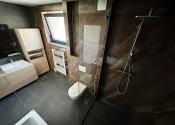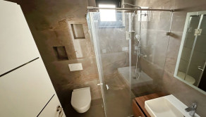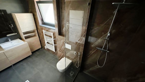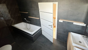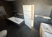 1.poschodie domu vstup cez nádherné drevené schodisko 3x izba, pracovňa, veľká kúpeľňa so sprchovým kútom a vaňou, WC.